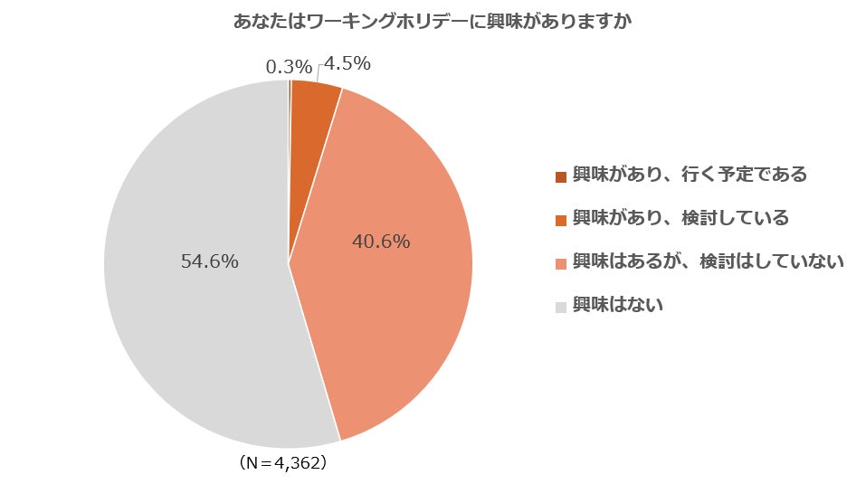 ・学生の約5割(45.4%)がワーキングホリデーに興味があると回答