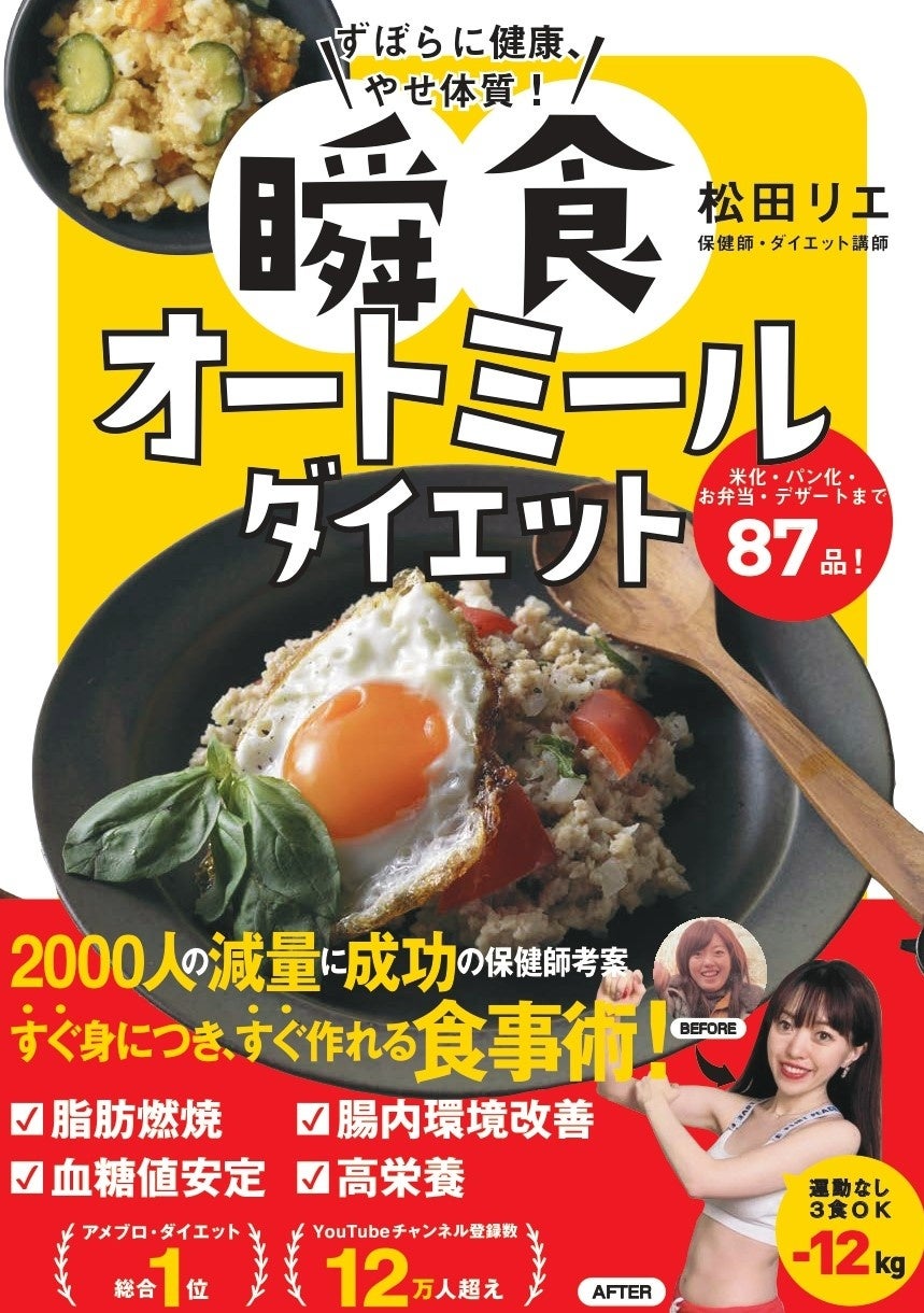 12キロ減量に成功の保健師・松田リエ考案!夫も10キロやせた最強レシピ『ずぼらに健康、やせ体質! 瞬食オートミールダイエット』4月10日発売