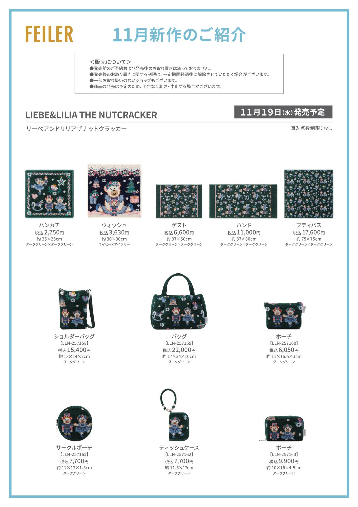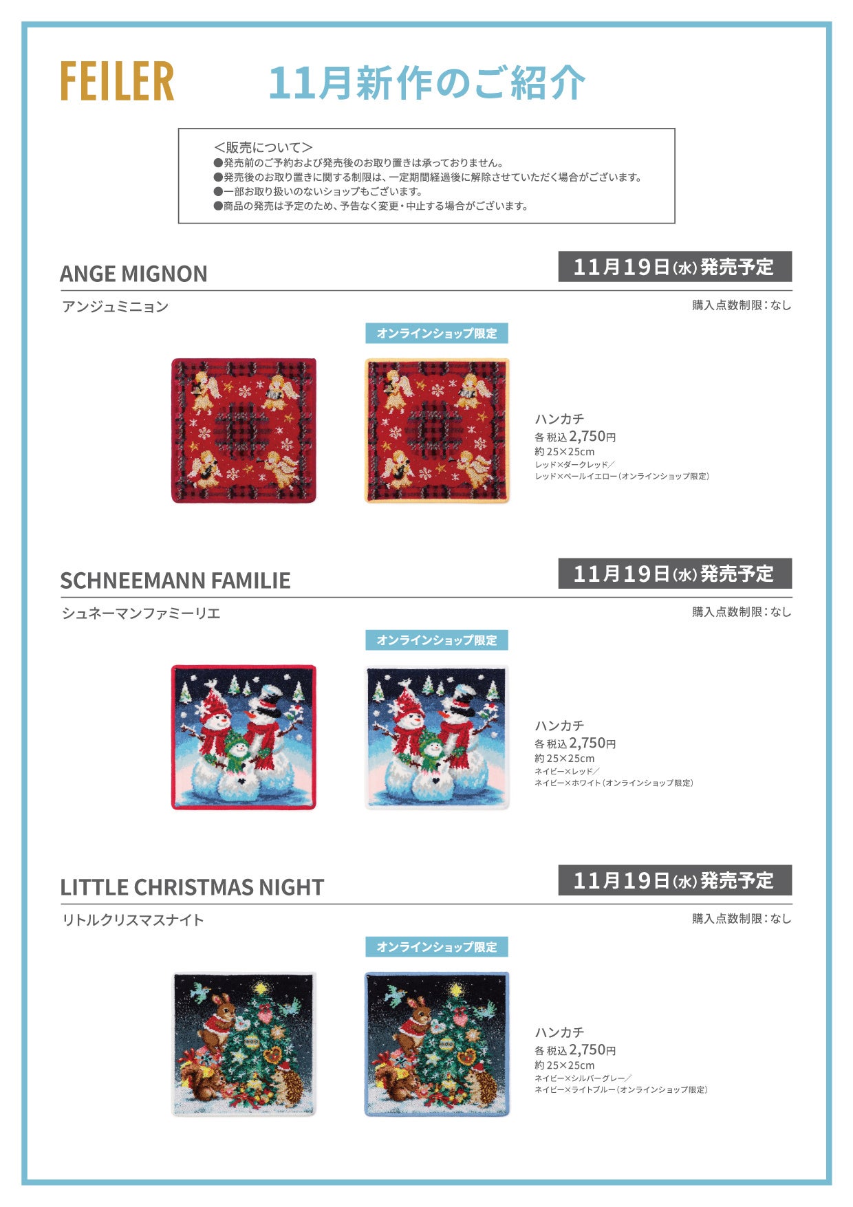 フェイラー公式オンラインショップでは、2025年11月19日(水)正午開始を予定いたしております。