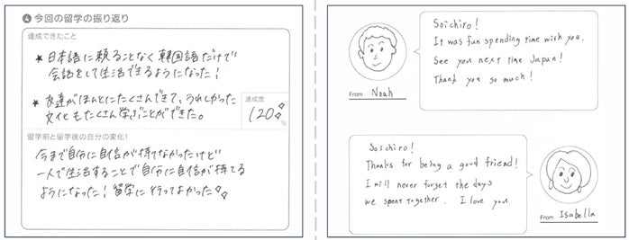 ・留学の振り返りページで成長を確認する。現地の人からのメッセージで愛と感謝の気持ちを育む