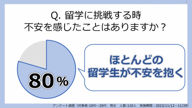 ・留学に挑戦する時、約8割の人が不安を感じることがあると回答しました。