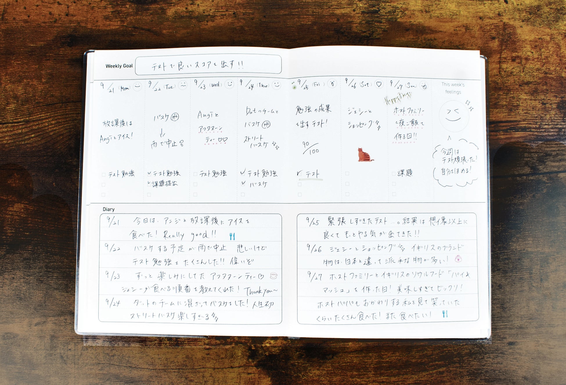 ・留学中の感動や苦労の瞬間を記録できる(ウイークリーページ)