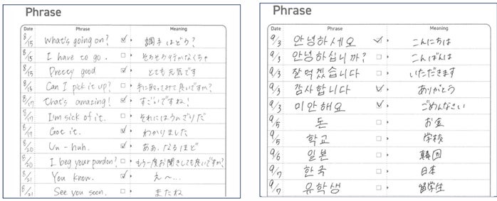 留学DIARYは、留学前の準備から留学中の出来事までを記録する手帳です。 帰国後、留学DIARYに記入されたページをめくりながら、「あの時、何をしたか。どんな事が大変だったか」留学時の感動や苦労、笑いと涙の瞬間が再び心によみがえります。 また、留学前と留学後の自分の成長が手に取るように実感できます。