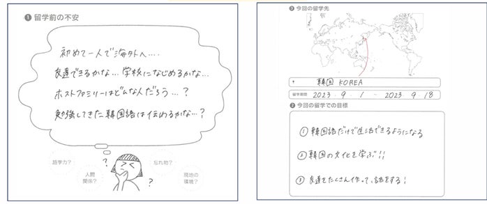 留学前は、出発前の準備や不安などのを軽減するためのメモや記録を記入できます。