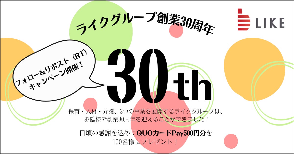 保育・人材・介護のライクグループ創業30周年 X公式アカウント フォロー&リポストキャンペーンを実施