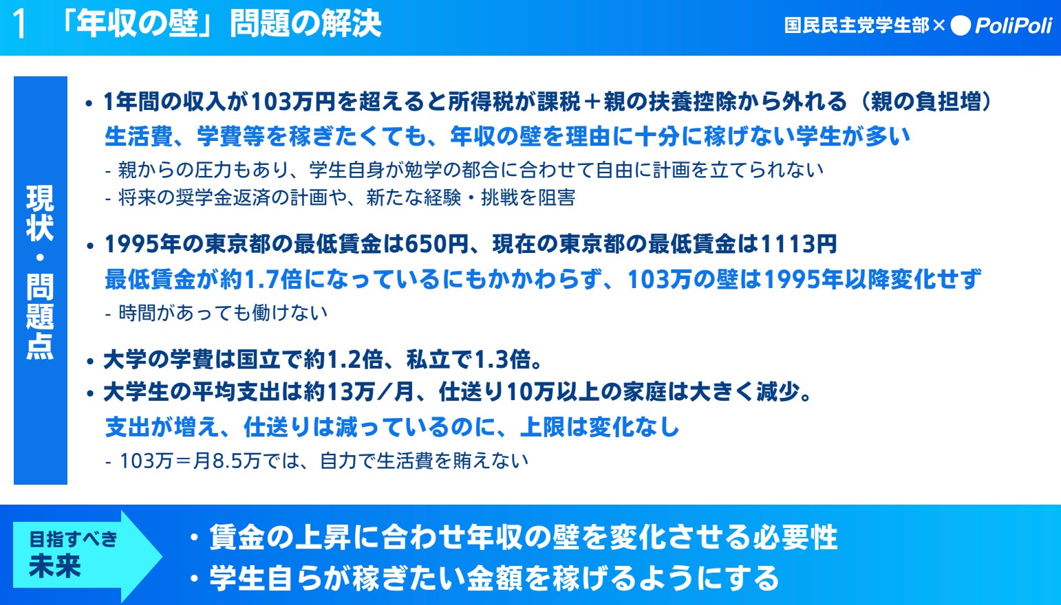 年収の壁、現状の選挙制度などについて若者視点に立った政策提言