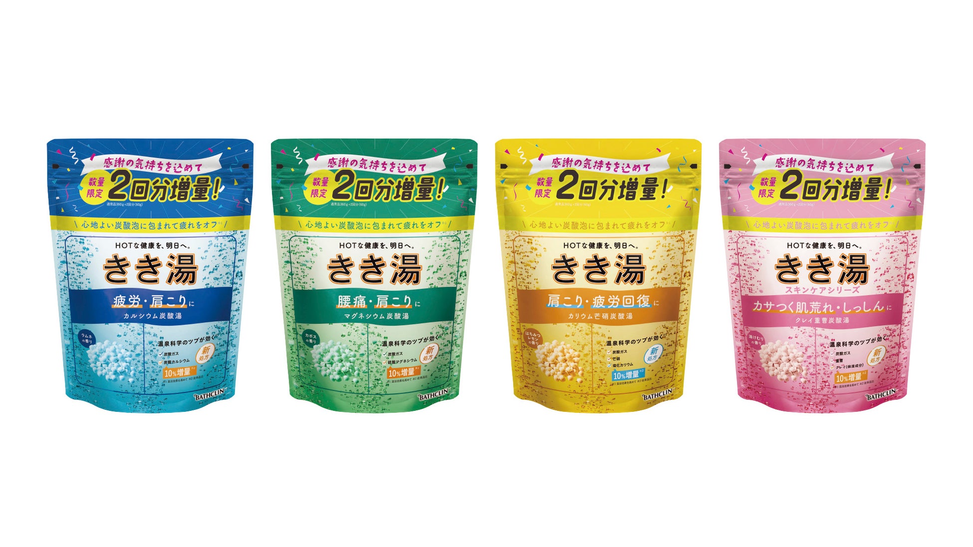 「きき湯」サステナパック化から1周年記念 感謝の気持ちを込めて2回分増量!