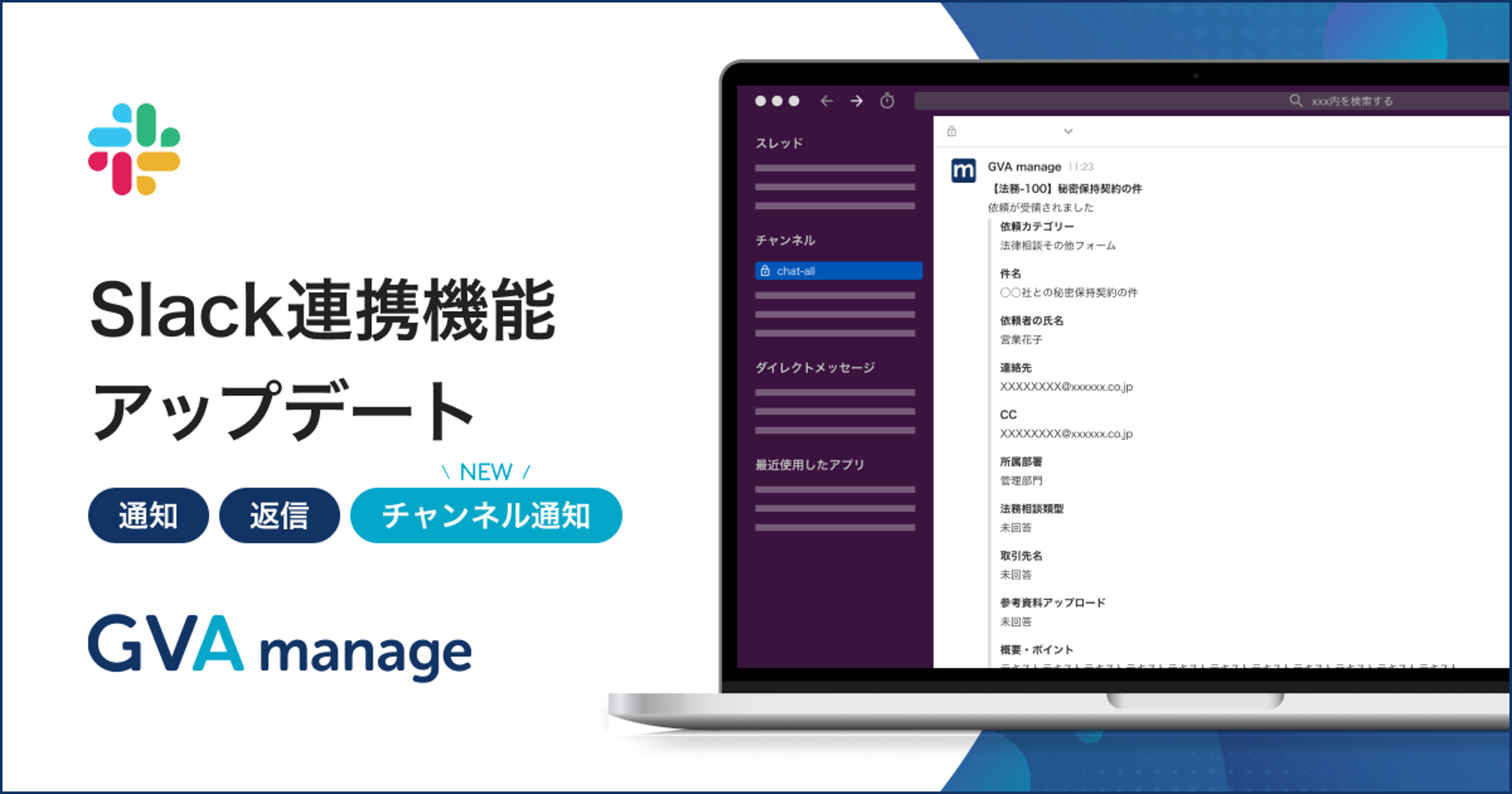 マターマネジメントシステム「GVA manage」がSlack連携機能のアップデートで任意のSlackチャンネルへ通知の送信が可能に
