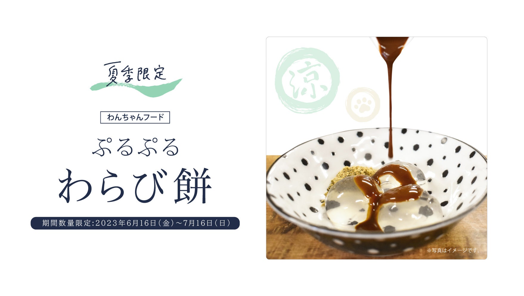 清涼感たっぷりデザートを愛犬と楽しもう!夏季限定のわんちゃん用『ぷるぷるわらび餅』数量限定発売のお知らせ!