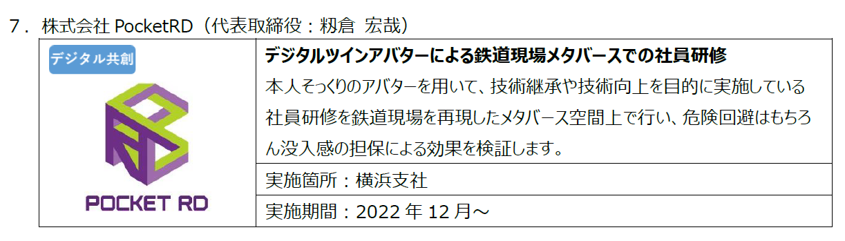 詳細はこちらを参照https://jrestartup.co.jp/news/2022/02/64299/