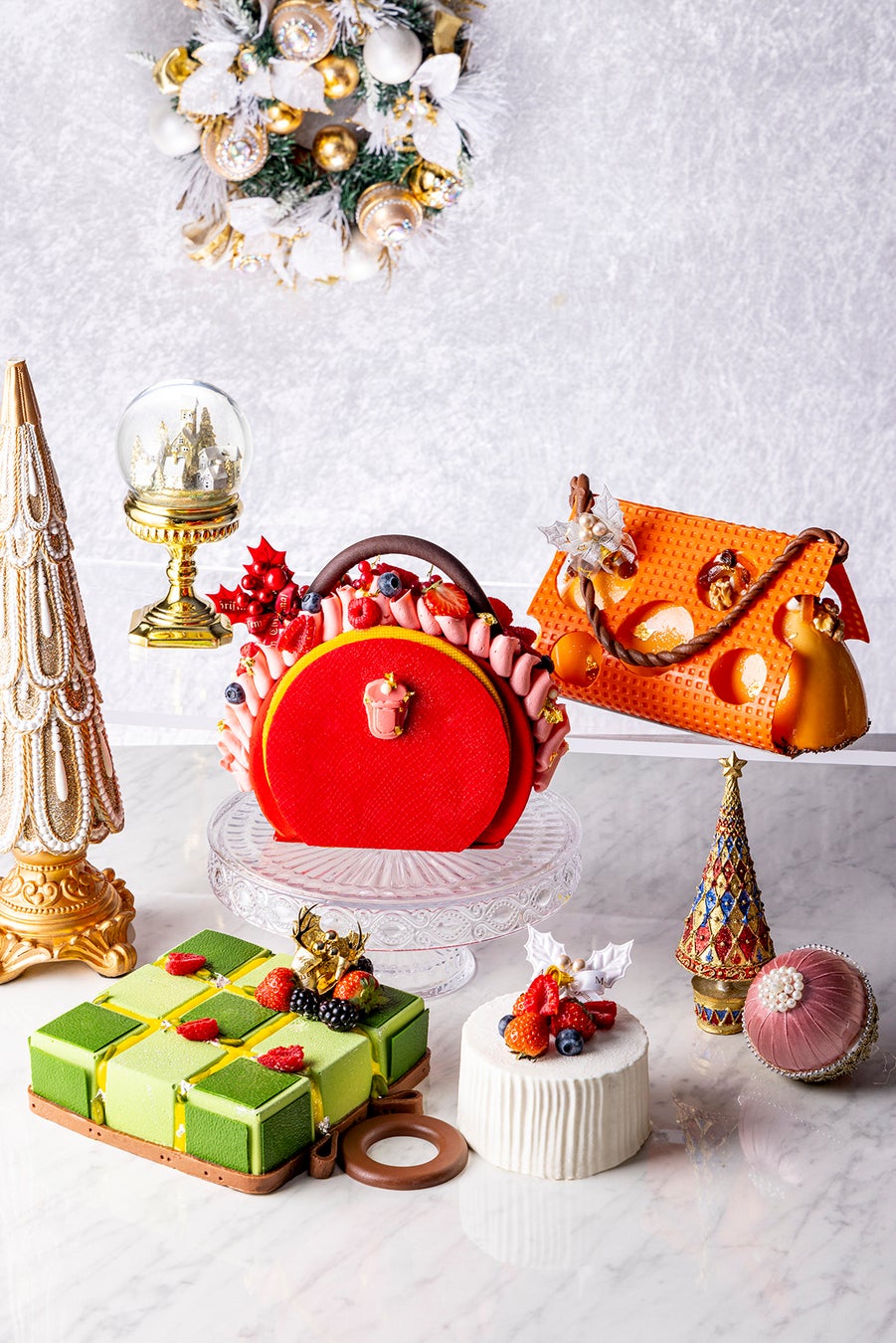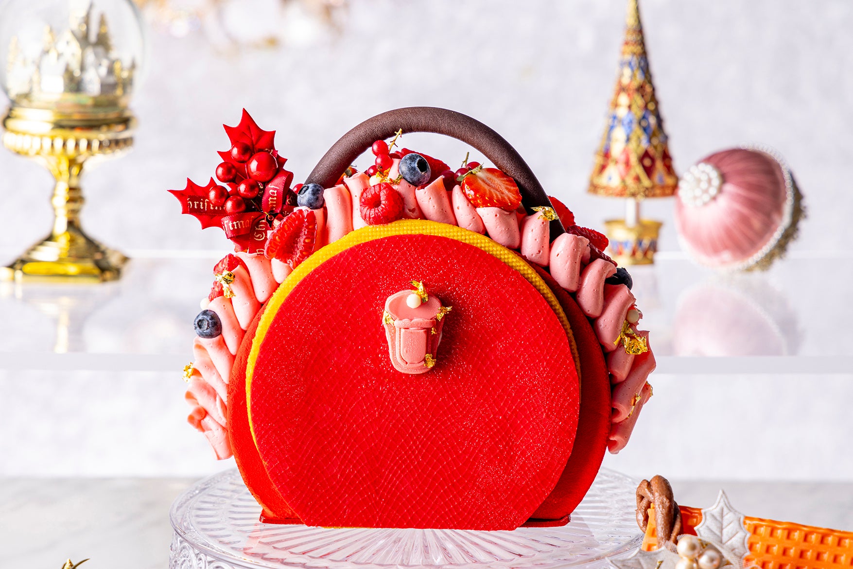 ホリデーシーズンの華やかなクリスマス・ウィンドーに飾られるおしゃれなバッグをイメージした今年のクリスマスケーキは食べるのが惜しくなるほどのクオリティと上品な味のバランスで構成され、パーティーの主役にふさわしい美しさです。チョコレートで作るバッグのハンドルや留め具風アレンジなど、まるで本物のバッグのようなフォルムのクリスマスケーキはボックスを開けた瞬間思わず歓声が上がる事でしょう。
