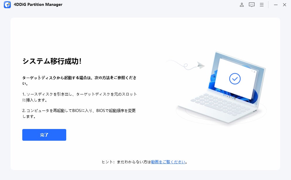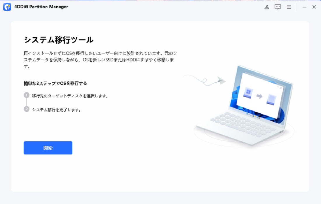 4DDiG Partition Manager: システムを再インストールすることなく、ワンクリックでWindows OSをSSDに移行することができます。