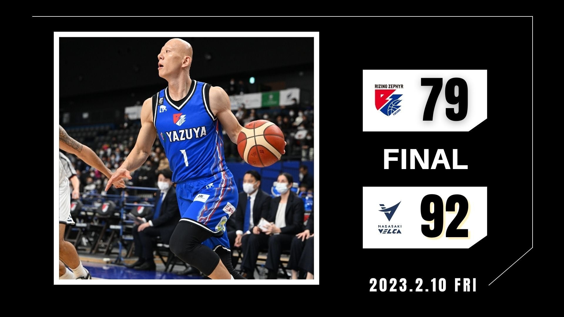 2023年2月10日(金)に開催されましたBリーグ第21節【ライジングゼファーフクオカvs.長崎ヴェルカ】において“福岡79-92長崎”の結果となりましたことお知らせいたします。
