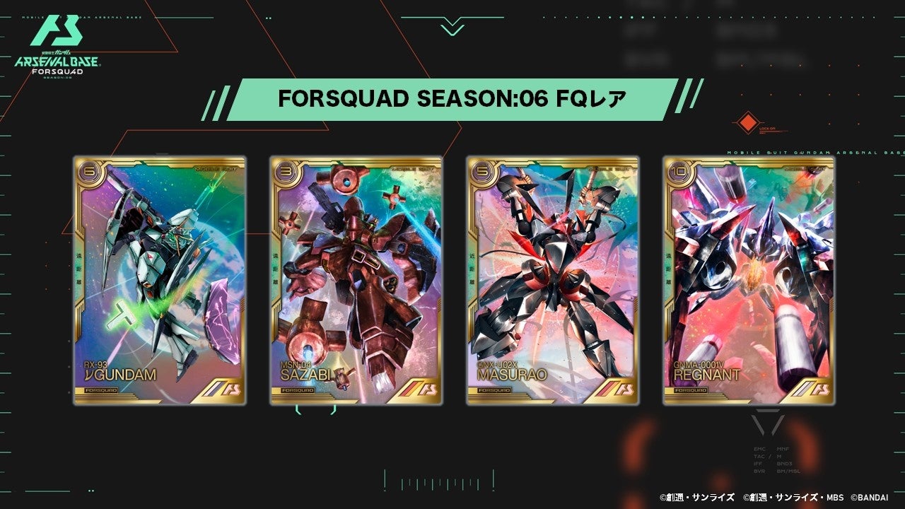 ガンダムアーケードカードゲーム『機動戦士ガンダム アーセナルベース』 <FORSQUAD SEASON:06>追加払い出しカード「FQブースター」が1月23日(金)より払い出し開始!