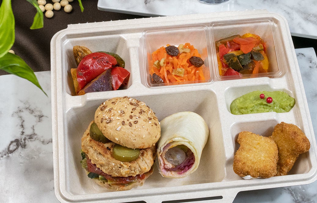 第一弾として動物性食材不使用の食材のみを使用した「プラントベースプラン」を販売し、第二弾として「大豆ミートバーガープラン」「大豆ミートバーガーボックス」を販売開始し、ご好評をいただいております。