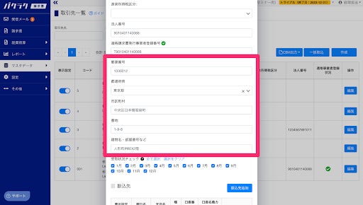 1. 取引先マスタで、取引先の住所を登録できるようになりました。