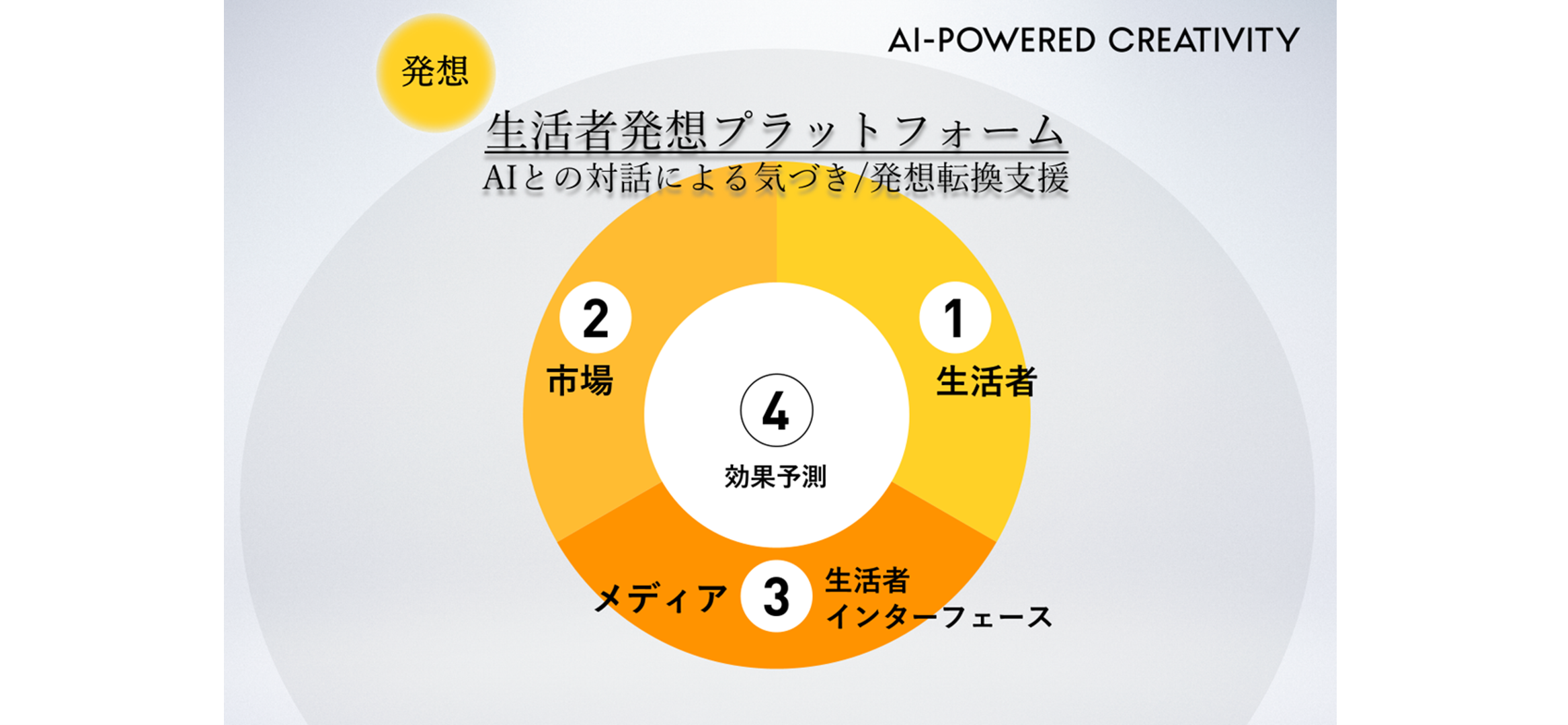 「生活者発想プラットフォーム」:生活者・市場への深い理解や、新しい発見・価値創造をAIとともに行い、AI×生活者発想でビジネスの拡大を支援する新しい発想支援基盤。