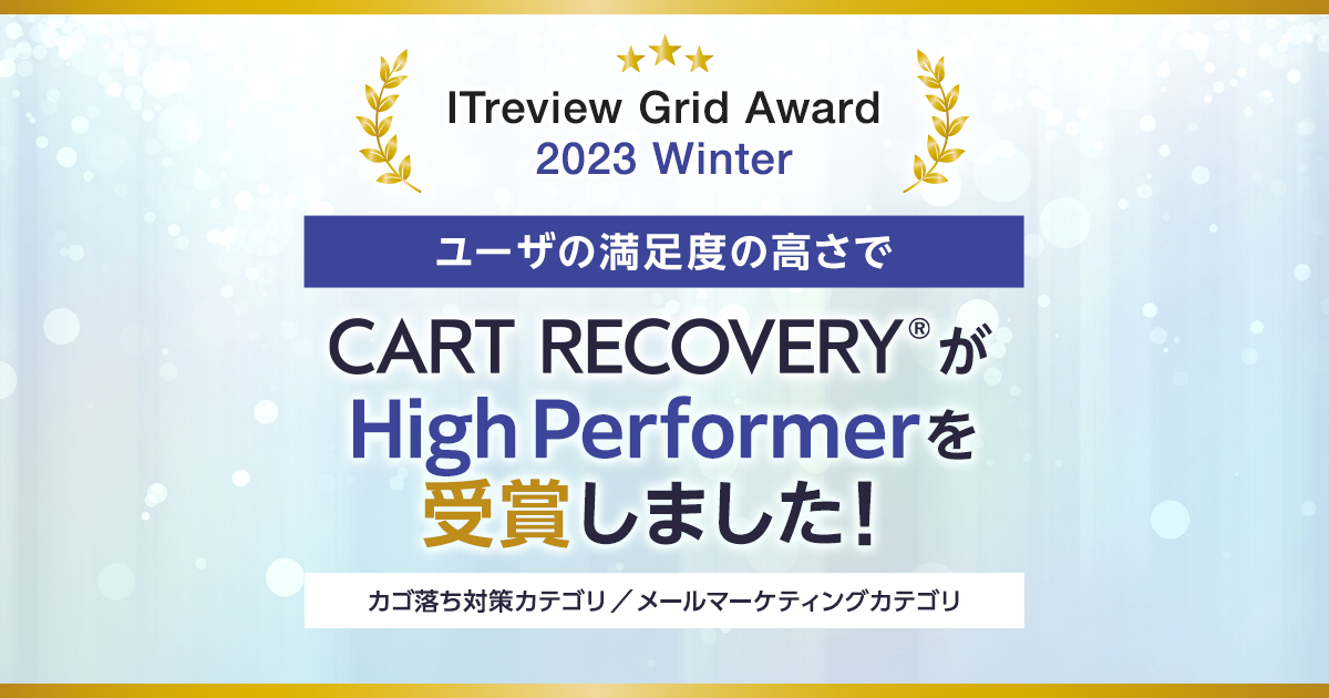 カゴ落ち特化型MAツール「CART RECOVERY®」、「ITreview Grid Award 2023 Winter」High Performerの称号を受賞!受賞記念レビューキャンペーンも実施