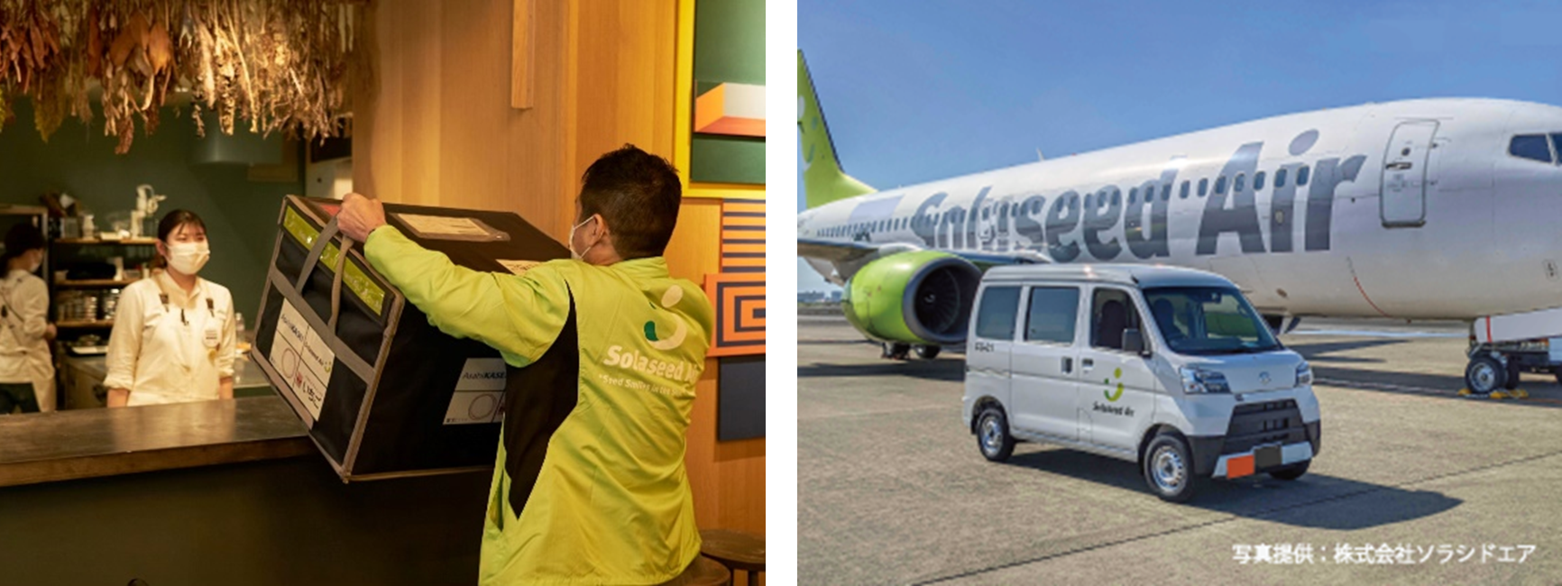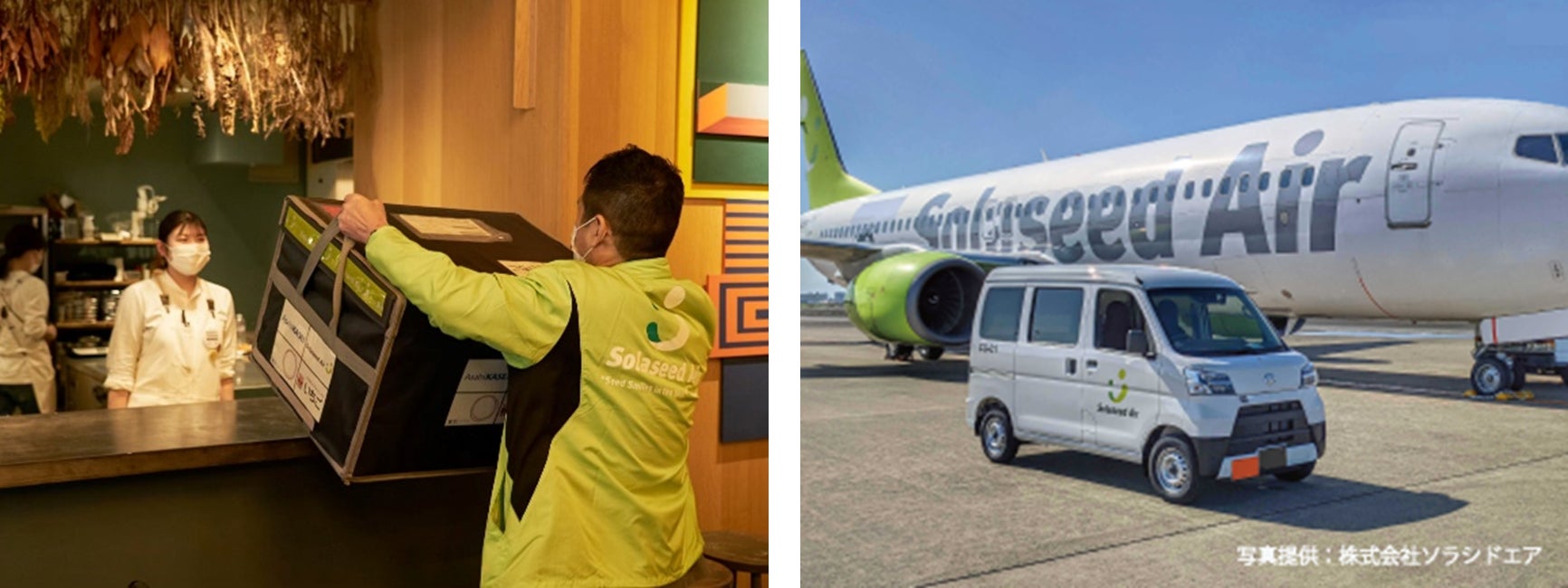 ソラチョク便とは、ソラシドエアが提供し当社と共同で取り組む「空陸一貫小口貨物輸送サービス」のことをいい、宮交シティが集荷拠点となり、引き取り(陸送)、航空輸送、納品(陸送)をソラシドエアで一貫して行い、当日中にお届けするサービスです。当日お届けというメリットを活かし、距離と時間の壁を越え、首都圏に宮崎県の食材の魅力をプロモートします。