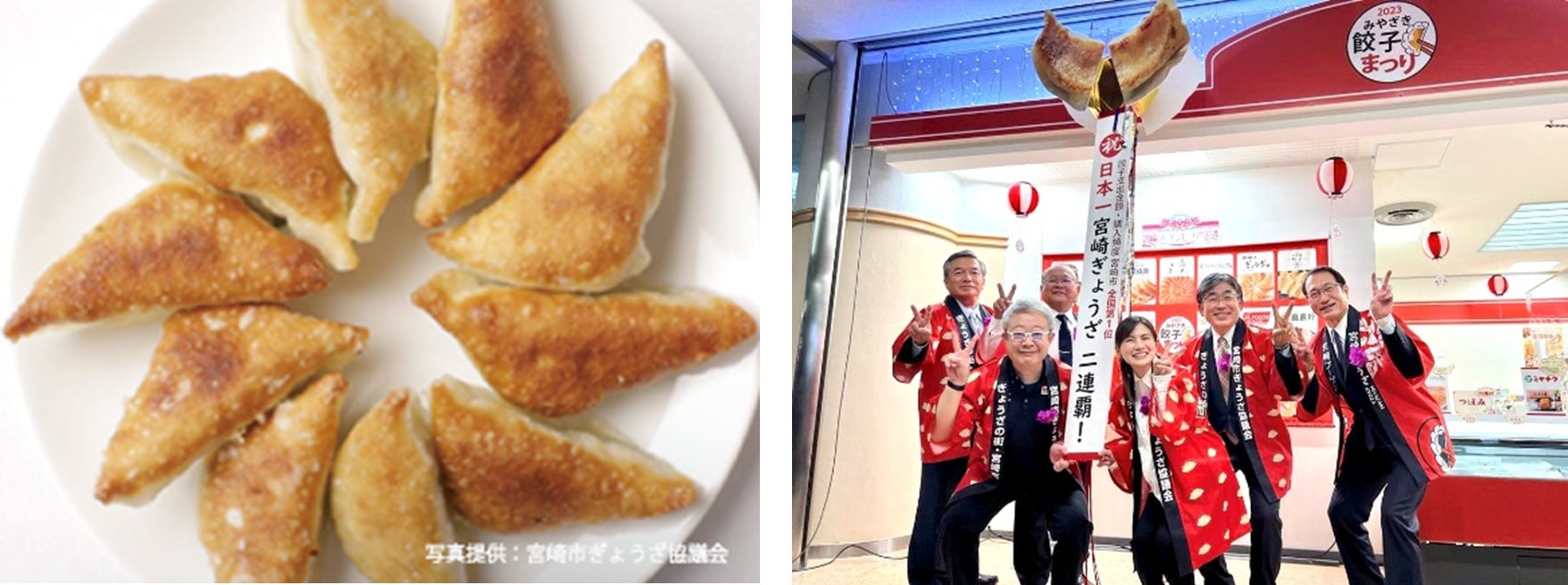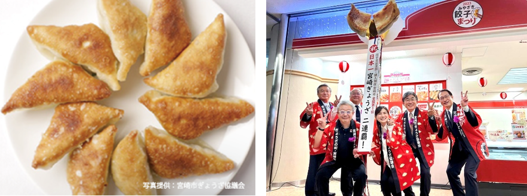 総務省の家計調査によると2022年の宮崎市の餃子の1世帯(2人以上)当たり年間支出額は、2年連続日本一となりました。当社の取締役 執行役副社長兼COOの石原実は、宮崎市ぎょうざ協議会の餃子大使を務め、宮崎ぎょうざのPRに取り組んでいます。