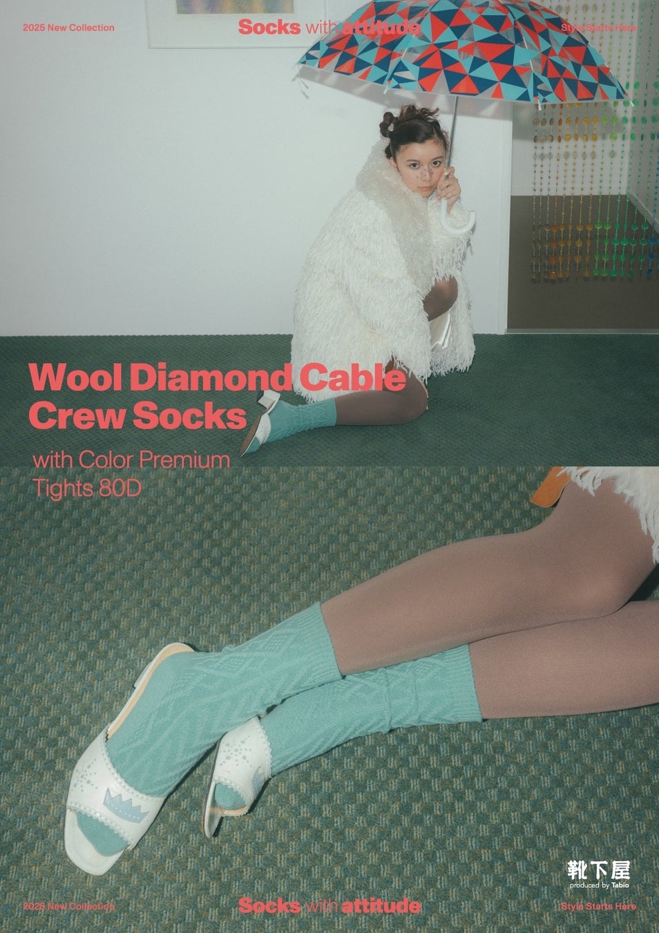⑤80デニール プレミアムタイツ ¥1,320(税込)&毛混ダイヤケーブルソックス ¥990(税込)