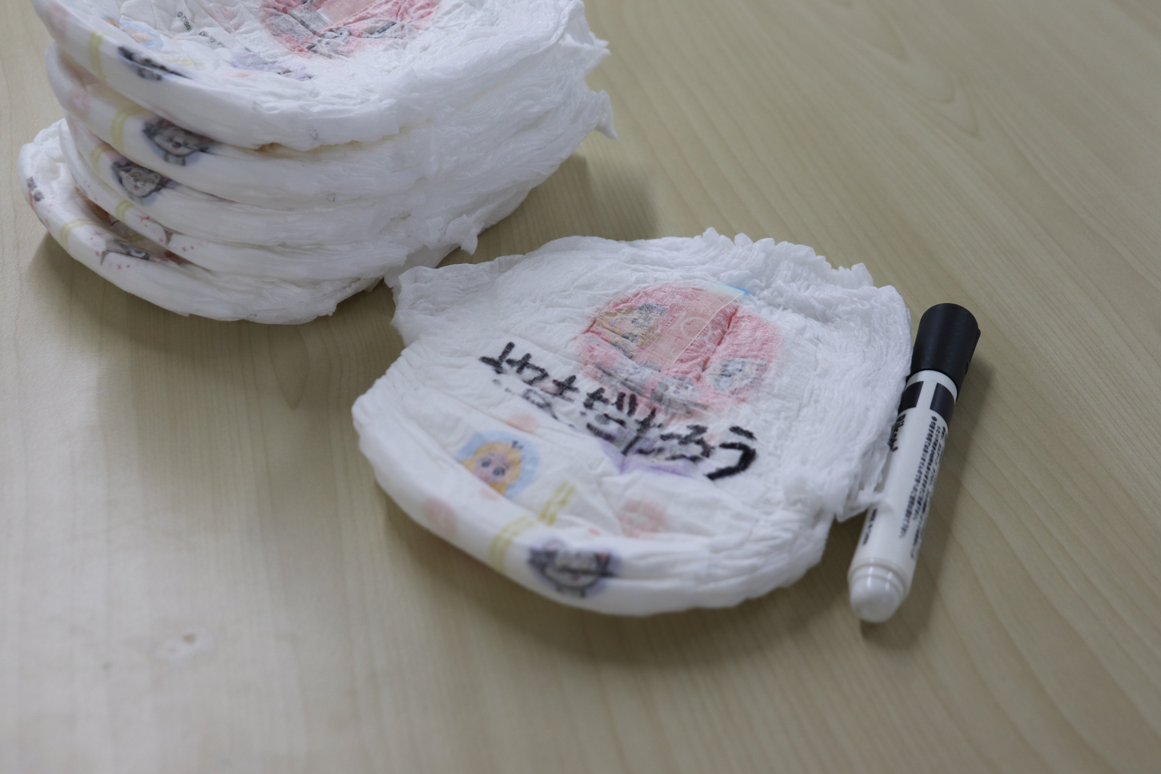 これまでは、保護者が紙おむつ1枚1枚に子どもの名前を書いて、毎日5〜6枚を保育施設に持参しなければならず、子育てと仕事で忙しい保護者の大きな負担になっていました。また、園側にとっても、紙おむつに名前を書いて持ってきてもらうことで、子どもごとに個別管理しなければならなくなり、業務の負担になっていました。