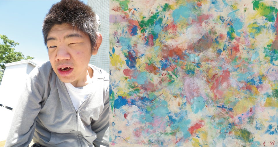 1993年生まれ。動物や飛行機など、様々な絵を描いてきた。現在はブランドのロゴにインスパイアされたかのような作品を描いている。その手法は多岐に渡り、時として斬新な画法を生み出す。最近では、石けんの泡で絵を包み込むという手法にこだわっている。いつも本能のまま生きている彼は、類まれなる身体能力を持ち、部屋の中でも外でも飛び跳ねていることが多い。そんなバイタリティを持っているからこそ、新しい発想ができるのかもしれない。