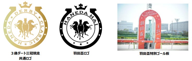 TCKでは、羽田盃(JpnⅠ)から始まり「東京ダービー(JpnⅠ)<6 月 5 日(水)>」、「ジャパンダートクラシック(JpnⅠ)<10 月 2 日(水)>」と続く3歳ダート三冠競走のオリジナルロゴを作成いたしました。レース名の象徴である「HANEDA」「DERBY」「CLASSIC」を含めた「3」の要素を馬、王冠、星など様々な場所にデザインし、3歳ダート三冠競走の偉大さ、格式の高さを表現しています。今後は場内映像や広告物などで本ロゴがご覧いただけます。また三冠競走ではゴール板もレースにあわせた特別仕様となりますので、レースをご覧の際はゴール板にもご注目ください。