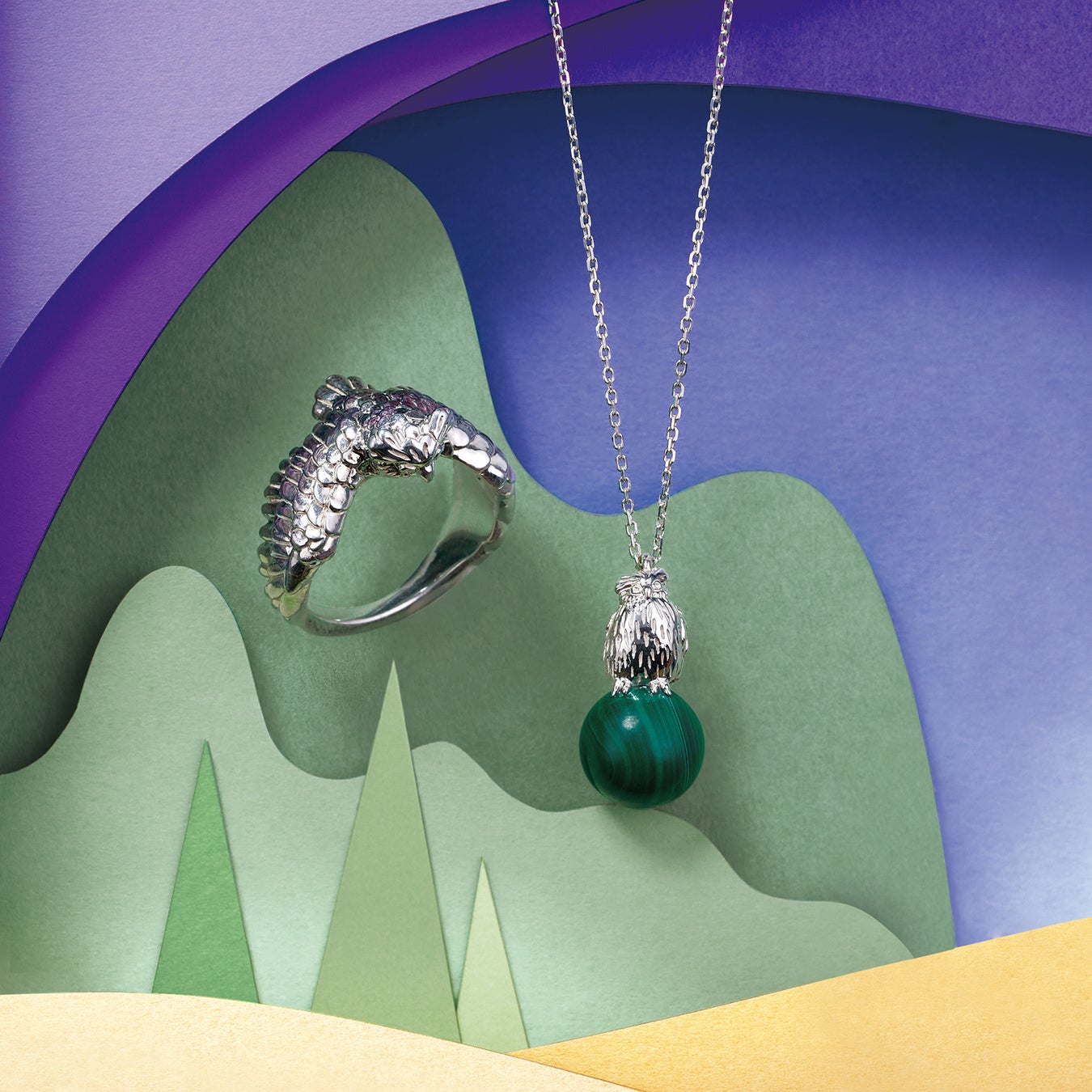 シマフクロウ リング¥22,000/シマフクロウ ネックレス¥22,000