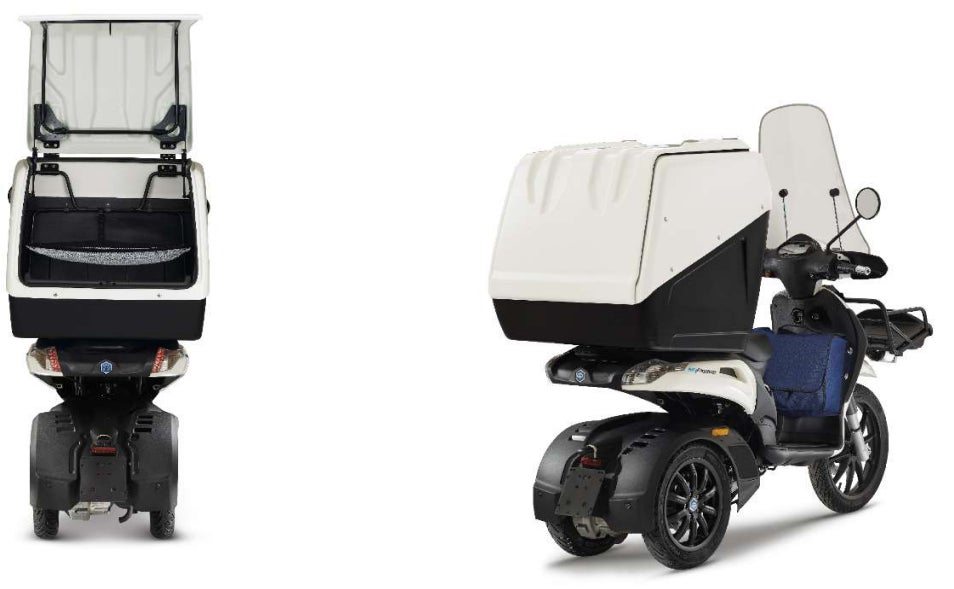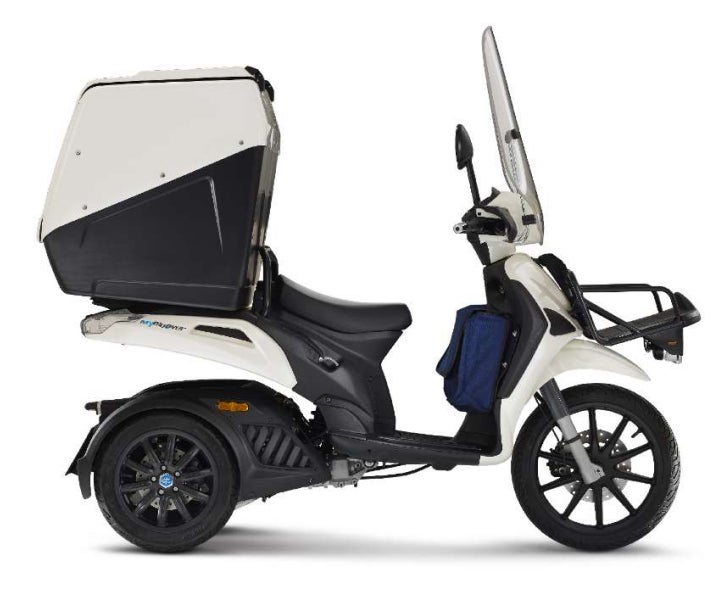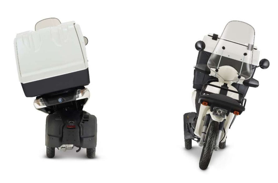Mymoover は 3 つの車輪で荷重を分散する構造により、路面との接地力に優れ、各ホイールには制動距離を 短縮するディスクブレーキが装備されており、クリーンでパワフルな水冷 4 ストローク 125 ㏄エンジンを搭載し、 ストップ・アンド・ゴーが連続する都市部でのデリバリーにおいて、一般的な 2 輪のデリバリー用スクーターと比 べ、機動性と安全性に大きなアドバンテージがあります。 さらに、Mymoover は大容量 261 リットルを誇るリアボ ックスやフロントラック、レッグシールド部分のセンターバッグに十分なラゲッジ容量を確保し、デリバリー業務を 効率良くサポートする他、様々なレジャーにも頼もしいスクーターとしてご活用いただけます。