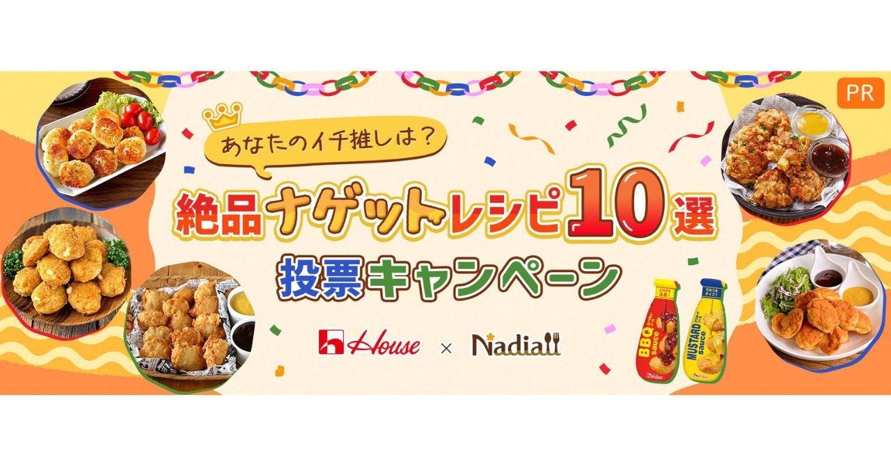 Nadia株式会社(東京都港区/代表取締役社長 葛城嘉紀 以下「Nadia」)とハウス食品株式会社(東京都千代田区/代表取締役社長 川崎 浩太郎 以下「ハウス食品株式会社」)がタイアップし、特設企画ページ【あなたのイチ推しは?絶品ナゲットレシピ 10選投票キャンペーン】を公開いたしました。