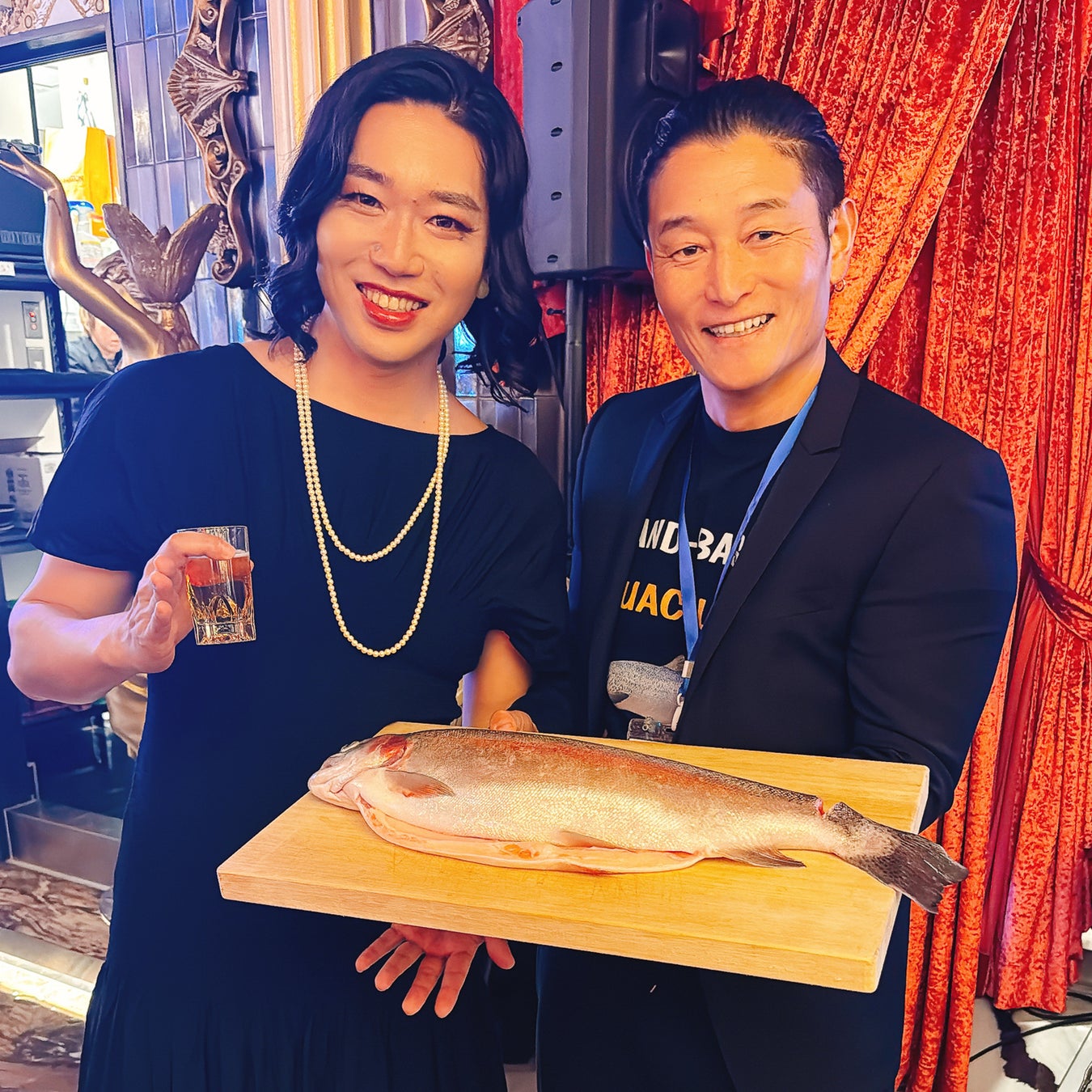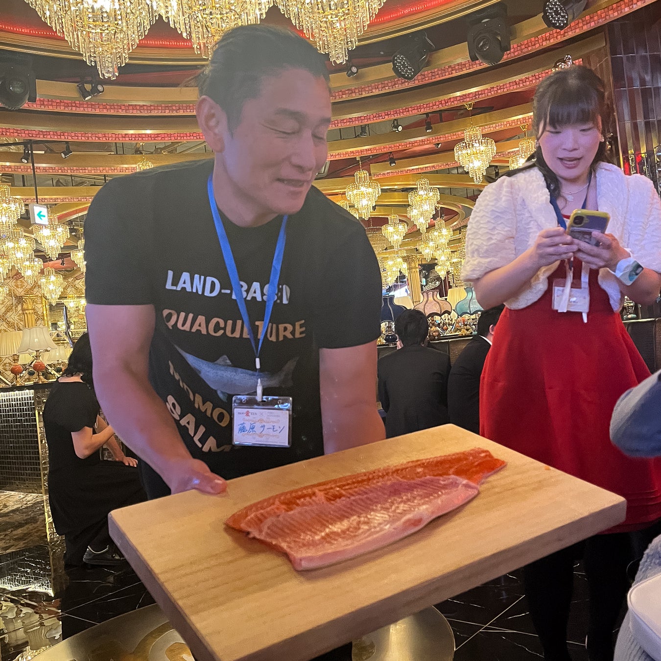 また、会場ではミシュラン2つ星レストランにも卸しているという、藤原サーモンを協賛品として提供いただきました。特別感のある食材とホストクラブという独特の空間が融合し、一般的な交流会とは一味違う体験型イベントとなりました。