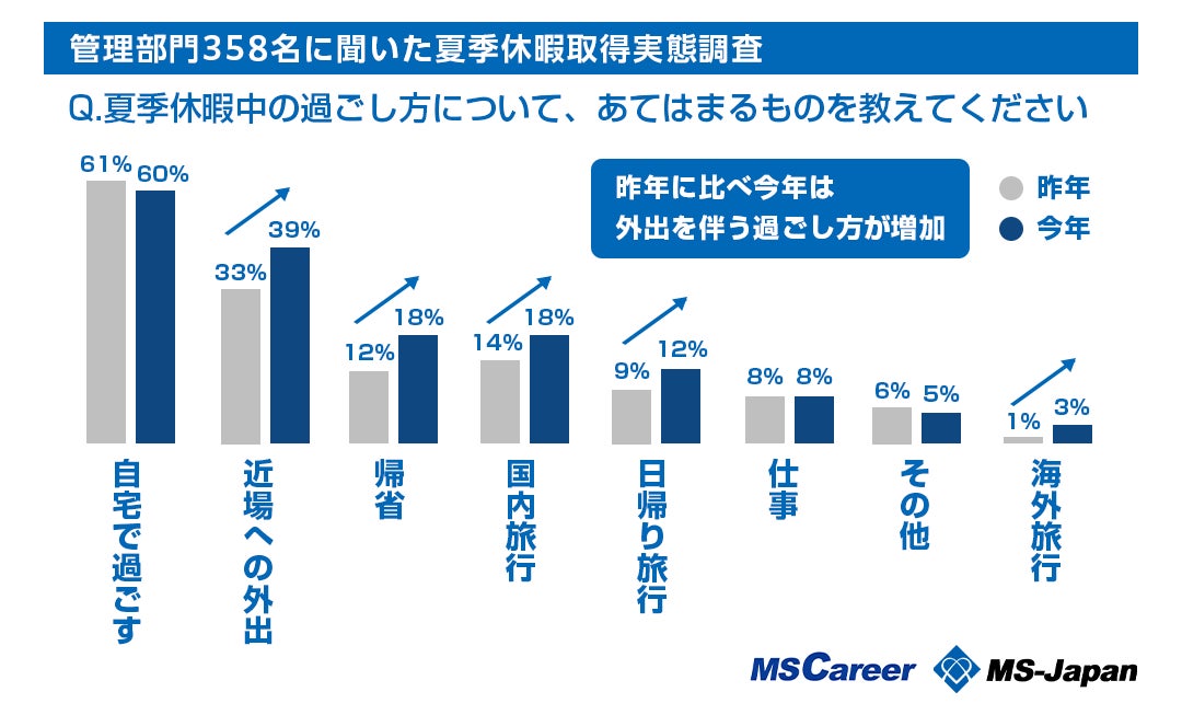 「外出不安無し」は6割で、昨年に比べ「外出を伴う過ごし方」全選択肢が増加。株式会社MS-Japanが調査結果発表