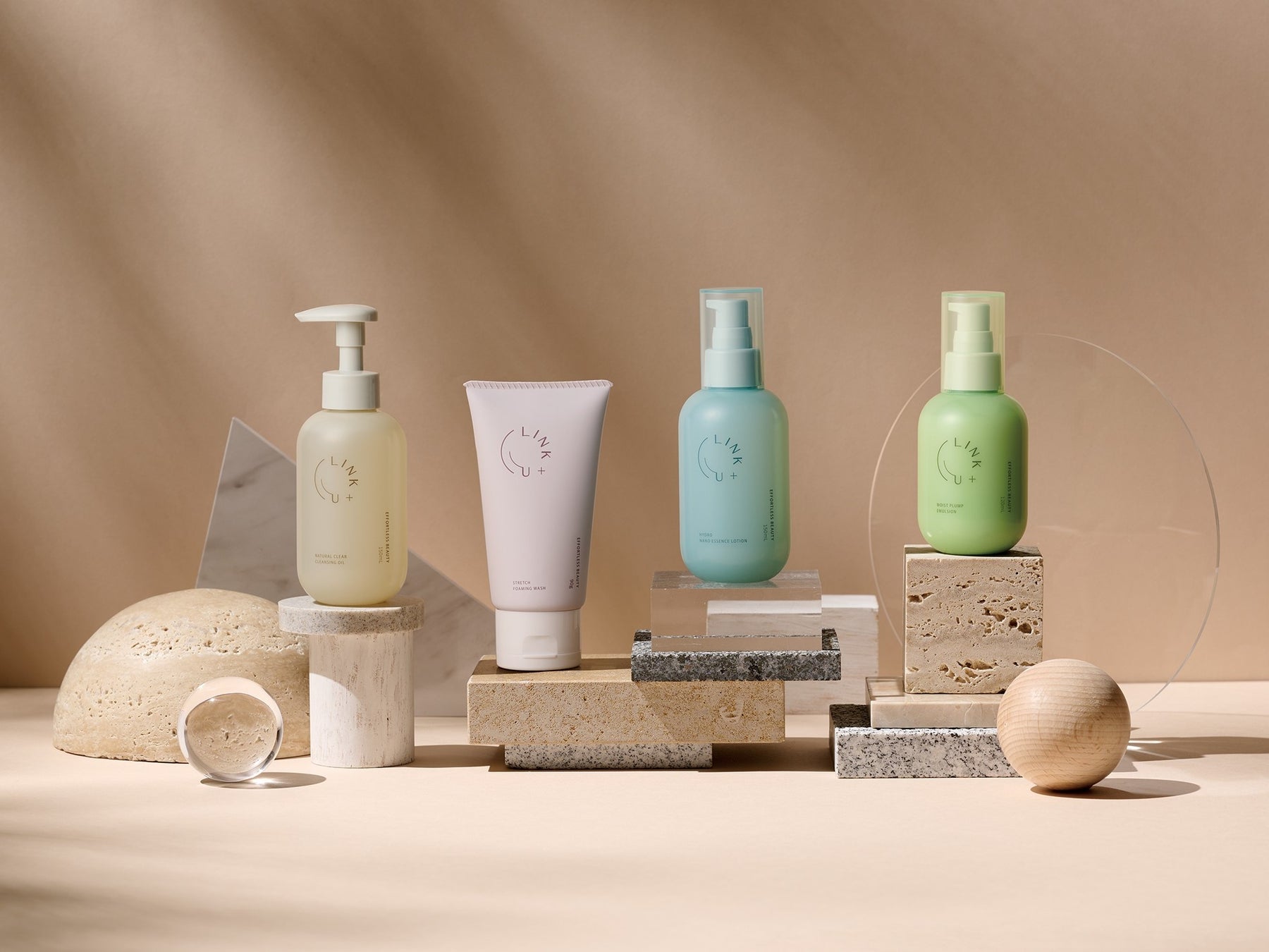 「LINK+U」は、自然由来成分とサイエンスを融合させたスキンケアブランドです。海藻由来成分など自然の恵みを活かした処方を特徴とし、忙しい日常の中でも心地よく使い続けられるスキンケアを提案しています。