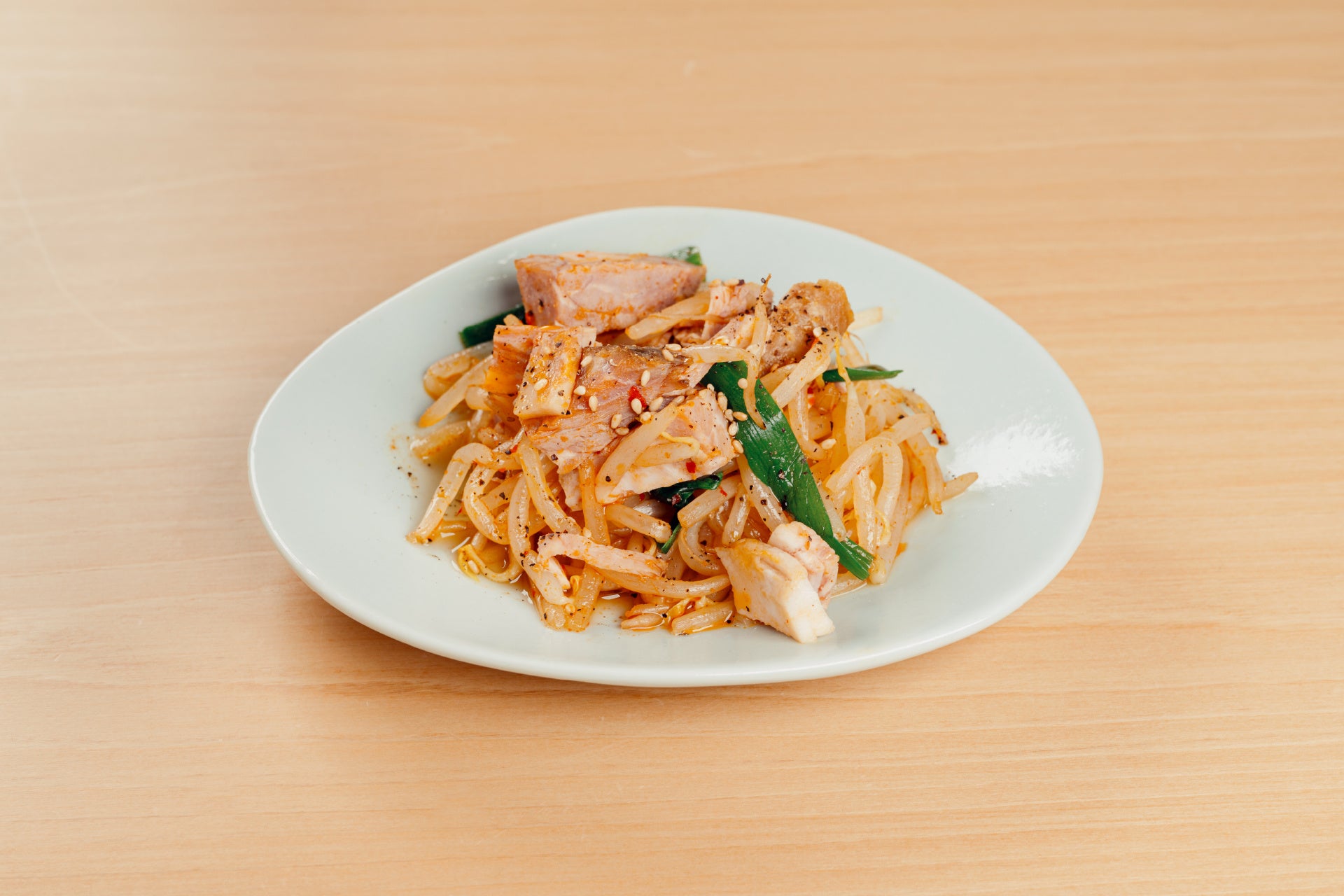 らーめんで使用しているチャーシューともやしをピリ辛に和えました。チャーシューの旨味とシャキシャキのもやしが癖になる一品です。