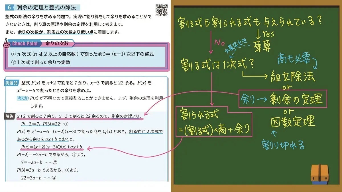 ▽黒板画面を用いたリアルな解説講義(イメージ:数学Ⅱ Basic編より)