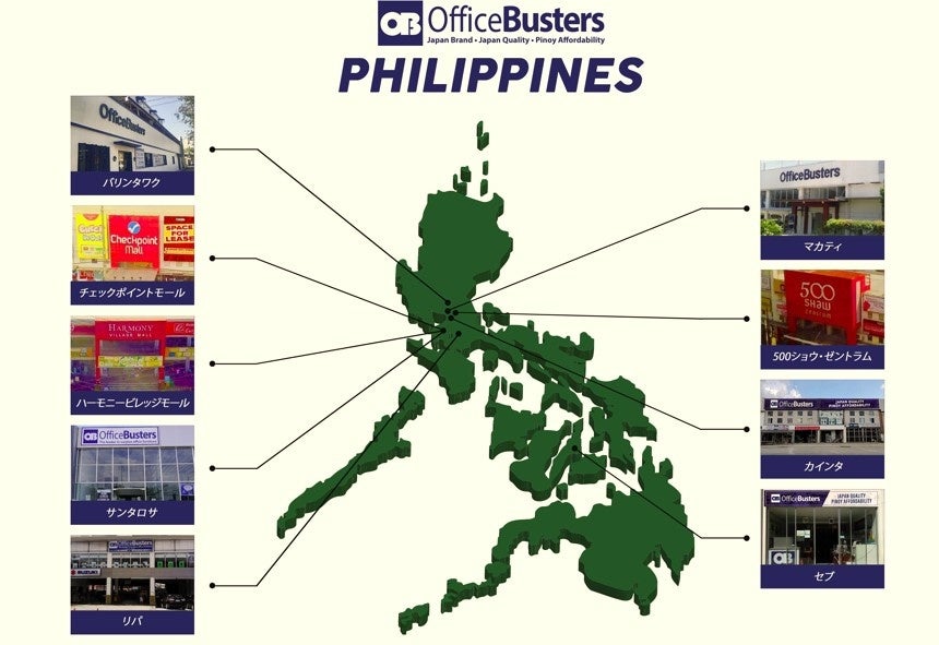 株式会社オフィスバスターズ(東京都中央区 代表取締役:熊⾕ 正慶 以下当社)では、日本国内33店舗(本年7月1日 東大阪店オープン)のみならず、中国・フィリピンでも事業展開を行っています。新型コロナウイルス禍においても、さらなる販路拡大のため2022年3月から、大規模ショッピングセンター3か所へ新店舗を順次オープンにいたりました。そこで今回は、新たに店舗拡大・進出しているフィリピン店舗をご紹介します。