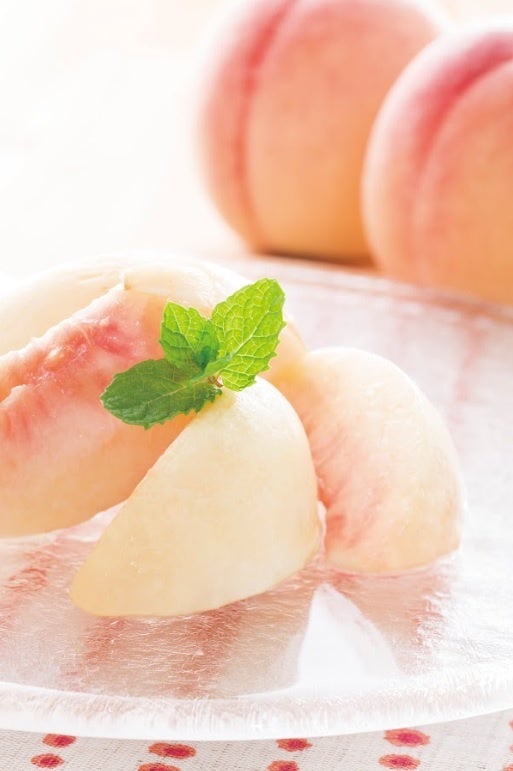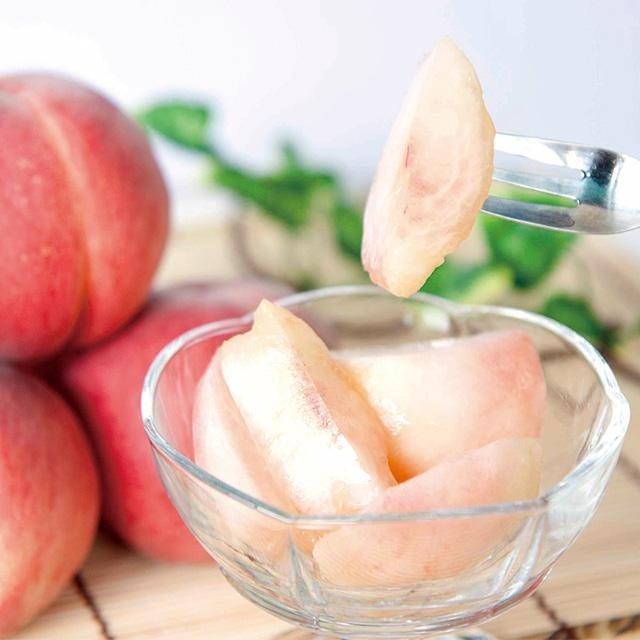 果汁ピューレのゼリーに、福島県産白桃の大きな果肉をとじ込めました。