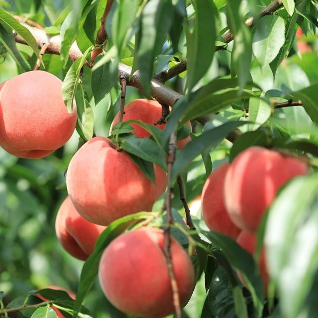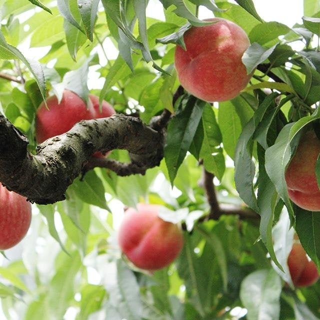 ふくしまの桃は全国生産量の20%超えとなる「くだもの王国ふくしま」を代表する果実です。6月中旬から10月中旬までの長い期間、さまざまな品種の桃が楽しめます。多くの産地が県内の盆地に集中しており、夏の暑さが甘みを凝縮させ、おいしい桃に育ちます。甘くみずみずしく実ったふくしまの桃を、「流通」に合わせて収穫するのではなく「おいしさ」に合わせて皆さまへお届けします。
