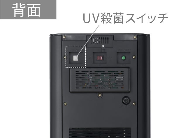 スイッチを押すだけで簡単にON/OFFを切り替えることができ、定期的に冷水タンクにUV LEDを照射する機能を搭載しています。衛生面が気になる方は本機能を使用することでより安心してご利用いただけます。