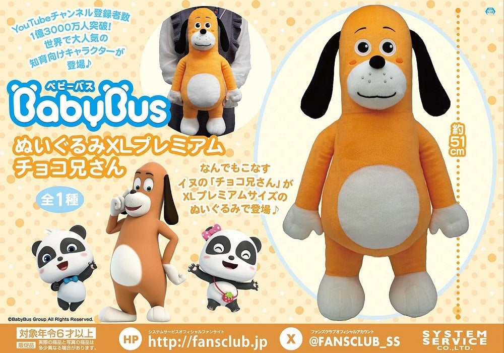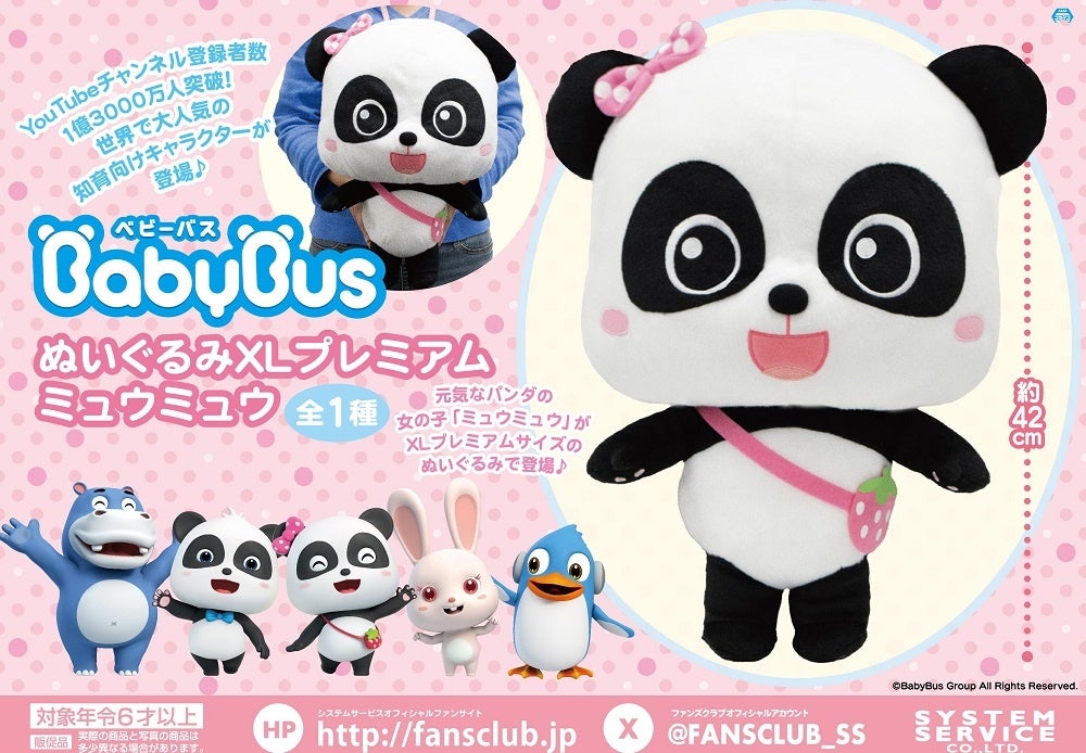 システムサービス株式会社(本社:東京都豊島区、代表取締役社長:田村宗弘)は、「BabyBus」のプライズ商品を2024年4月から3ヶ月連続でプレミアムサイズのぬいぐるみをアミューズメント施設にて展開いたします。
