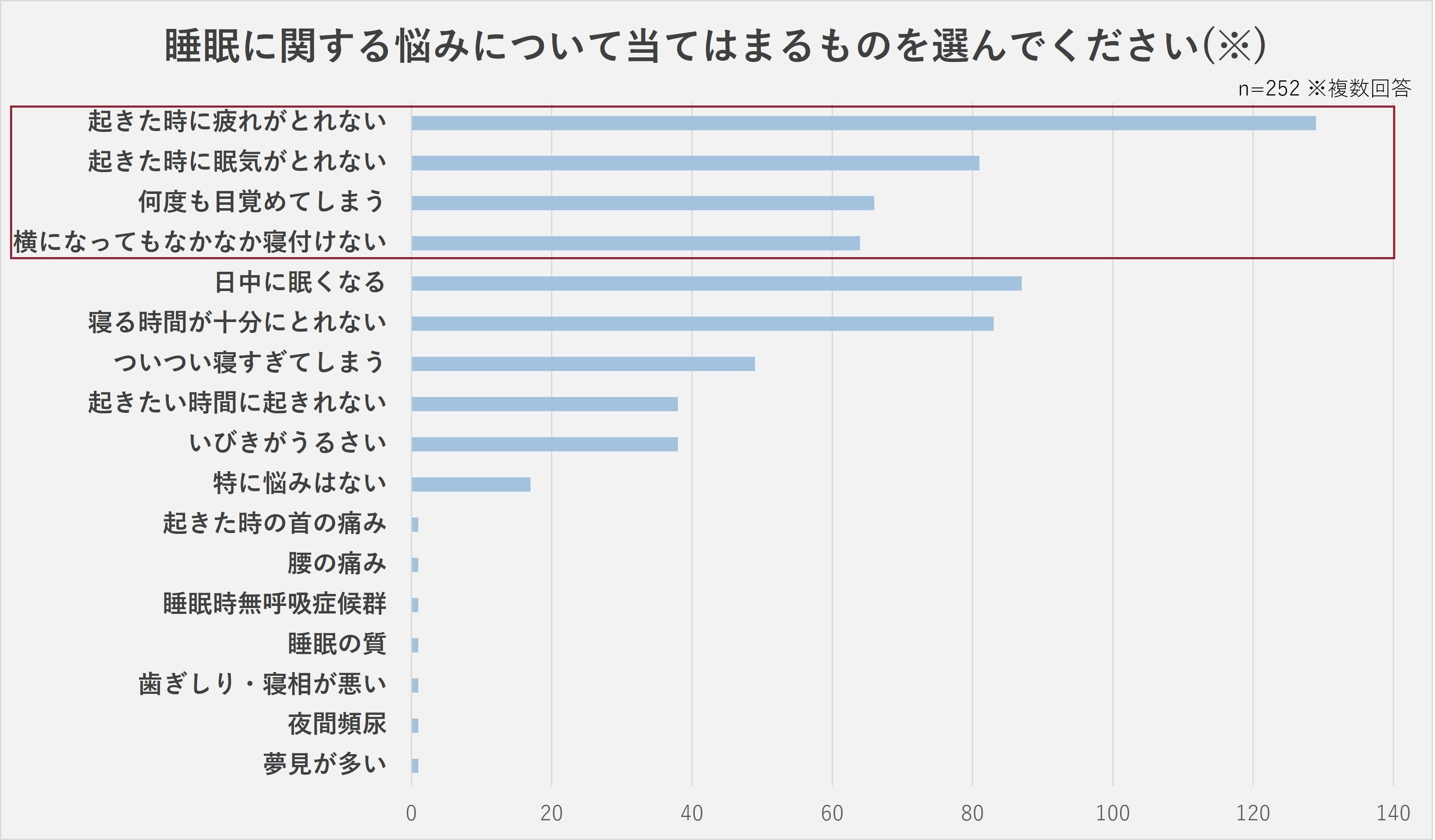 季節の変わり目は寒暖差が大きく、自身の体温を調整するため身体が疲れやすくなる寒暖差疲労に陥る方が増加します。寒暖差疲労は7℃以上の気温差があると起こりやすくなり、身体の冷えや肩こり、頭痛など様々な心身の不調をもたらします。睡眠中は特に、服を着脱するなどの意識的な寒暖差調節が難しいため、季節の変わり目は睡眠環境も不安定になり、中途覚醒や起床時の疲労、眠気がとれない等、睡眠の質にも影響を及ぼします。自社アンケート調査でも「起きた時に疲れがとれない」「何度も目覚めてしまう」「横になっても中々寝付けない」など入眠や中途覚醒といった悩みも多く寄せられています。(※)また、寒暖差は寝室内だけでなく、家の中における部屋ごとでも発生し、健康被害を引き起こすヒートショックになる危険性も高まります。北海道や東北といった寒冷地では断熱性の高い住宅構造となる寒冷地仕様の住宅が多いですが、その他の地域においては、家庭内寒暖差を意識する必要があります。