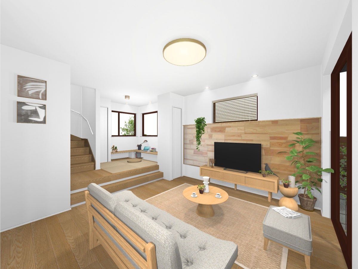 また、国産杉材を貼り合わせた無垢材アクセント壁パネル「木もれ美」をリビングの一部に採用。きれいな空気と快適な湿度、高いデザイン性で上質な空間を創出します。