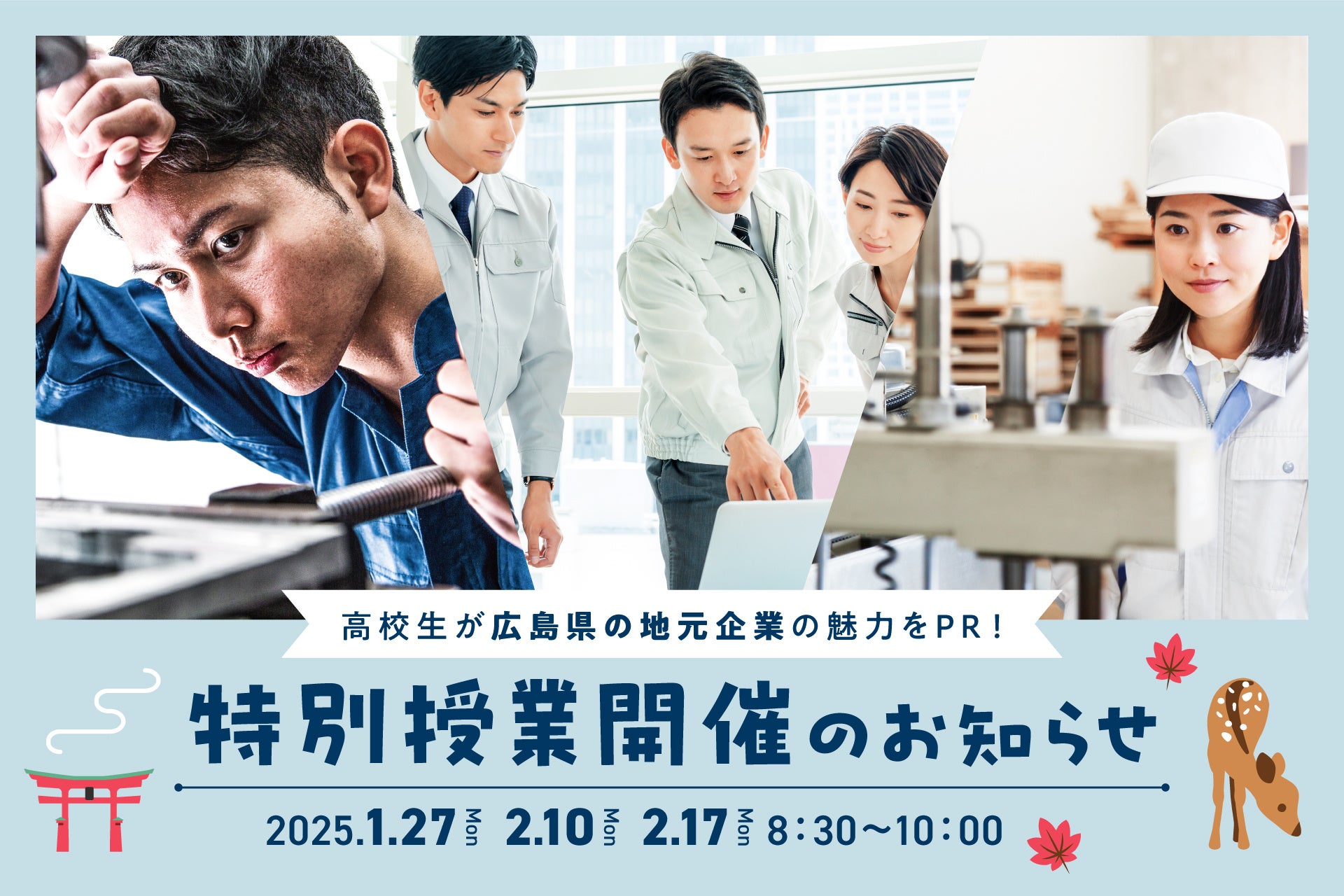 今回の広島県立広島工業高校の特別授業では、来年度に進路選択を控える2年生が、製造・建設業の地元企業との関わりで職業や企業についての理解を深めます。参加する15社の企業にとっては、高校生に自社や業界の魅力を直接伝える場となります。