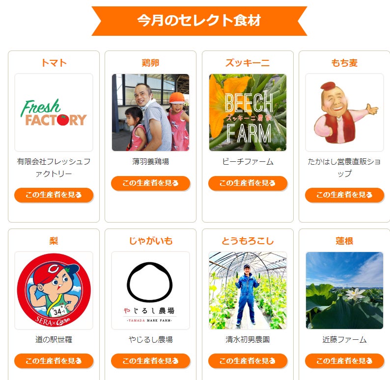 全国の生産者さんからセレクトした新鮮な食材を少しずつ堪能できます。セレクトした食材は普段の料理に使えるものや、生でも楽しめるものばかりなので、安心してご注文いただけます。また、気に入った食材が見つかれば、生産者から直接購入することができます。