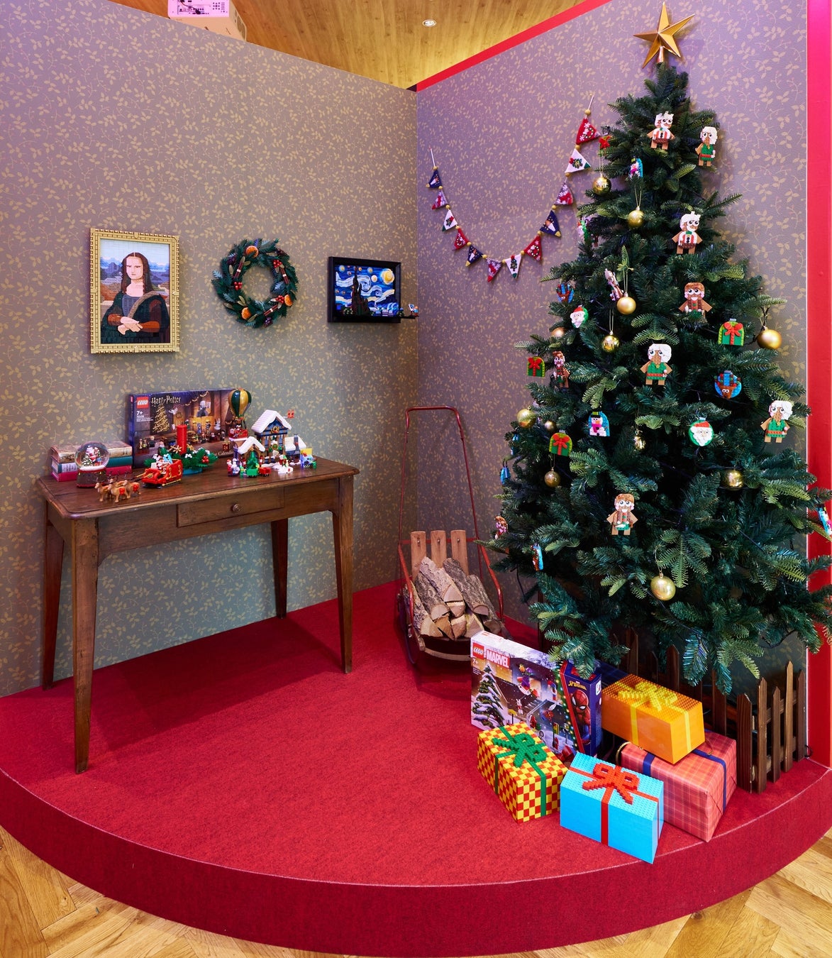 他のページでは、大きなクリスマスツリーに、表情豊かなジンジャーブレッドやサンタクロース、雪だるま、トナカイをモチーフにしたレゴ®ブロックのオーナメントが飾られ、「レゴ®アイコン サンタクロースの郵便局」や「レゴ®サンタのそり」などのクリスマスならではのアイテムがディスプレイされるなか、壁には「レゴ®アート モナ・リザ」や「レゴ®アイデア ゴッホ 星月夜」など部屋のインテリアに個性を添えるアート作品が並びました。