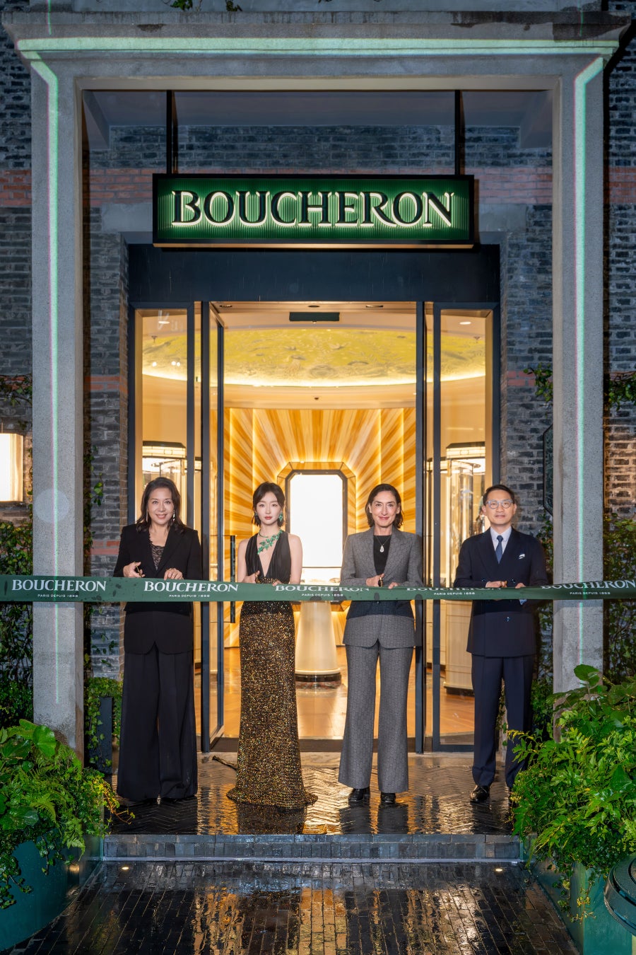 ブシュロンはこのたび、中国における初の旗艦店を上海・新天地にオープンし、メゾンの歴史に新たな一章を刻みました。パリ・ヴァンドーム広場本店、東京・銀座本店に続く世界で3店舗目となる旗艦店、「ブシュロン 新天地本店」のオープンは、2015年からメゾンを率いるCEO エレーヌ・プリ=デュケンが推進してきたアジア戦略の重要な節目となります。中国とフランスを結ぶ架け橋となることを目指し、メゾンが大切にするヘリテージと革新を融合させた空間です。ヴァンドーム広場本店や銀座本店と同様に、店内には随所に自然が息づき、ゲストを穏やかな散策へと誘います。ここでは、フランスと中国それぞれの文化が対話し、ひとつの美しい言語として響きあいます。そして、このオープニングを記念して、「Centuries of innovation and craftsmanship, from Paris Place Vendôme to Shanghai Xintiandi ― パリ・ヴァンドーム広場から上海・新天地へ、数世紀にわたる革新とクラフツマンシップ」をテーマに開催されたグランドオープニングイベントでは、ブシュロンの原点と未来が出会う象徴的な瞬間となりました。