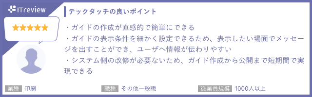 ・非エンジニアでもスムーズに設定ができ、またリリースまでは手厚くCSの方がガイド設定に伴走いただけるため、スムーズにガイド作成ができている