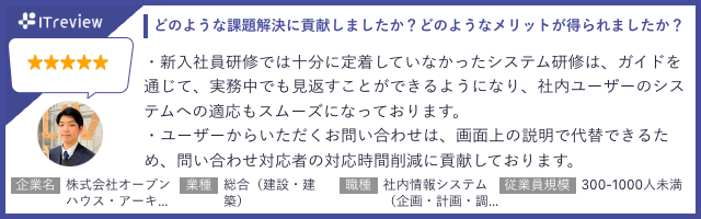 ・システム研修は、ガイドを通じて実務中でも見返すことができるようになり、社内ユーザーのシステムへの適応もスムーズになっている