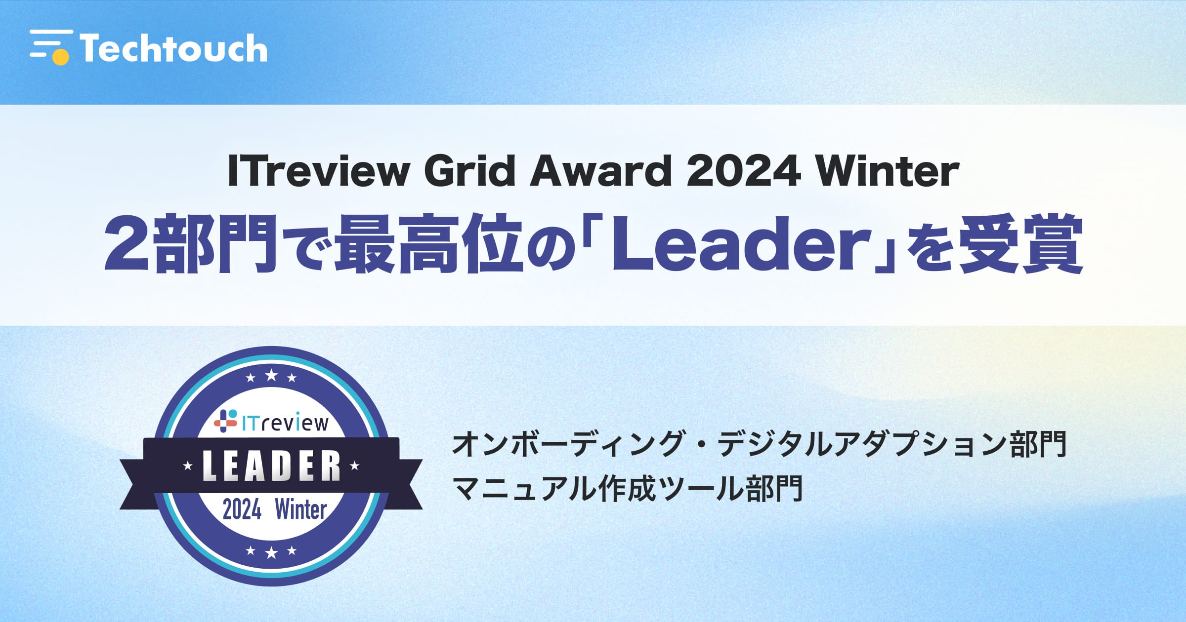 テックタッチ、「ITreview Grid Award 2024 Winter」最高位である「Leader」を2部門同時・4期連続受賞
